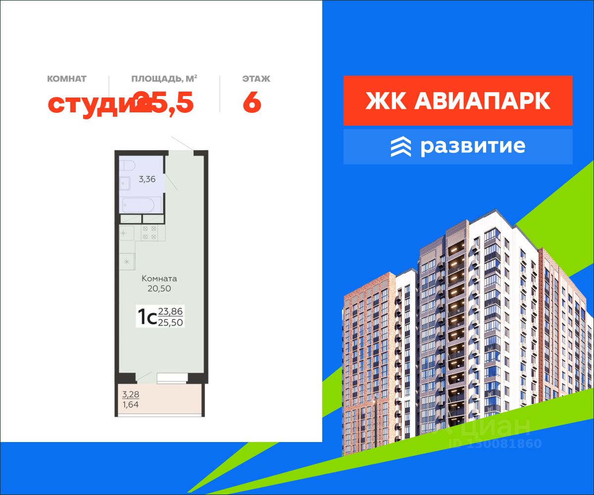 В продаже квартира площадью 25.50 кв. м с отделкой. Квартира расположена на 6 этаже 10 этажного дома, в новом жилом квартале "Авиапарк".