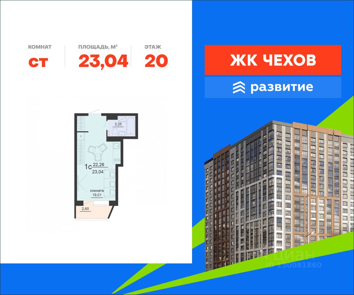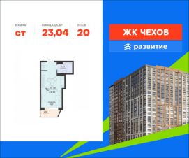 Продается квартира площадью 23.04 кв. м без отделки. Квартира находится на 20 этаже 20 этажного дома, в жилом комплексе "Чехов". Комплекс расположен по адресу - г. Воронеж, ул. Богдана Хмельницкого д. 45а.