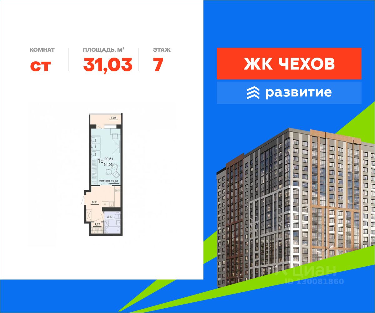 Продается квартира площадью 31.03 кв. м без отделки. Квартира находится на 7 этаже 20 этажного дома, в жилом комплексе "Чехов". Комплекс расположен по адресу - г. Воронеж, ул. Богдана Хмельницкого д. 45а.