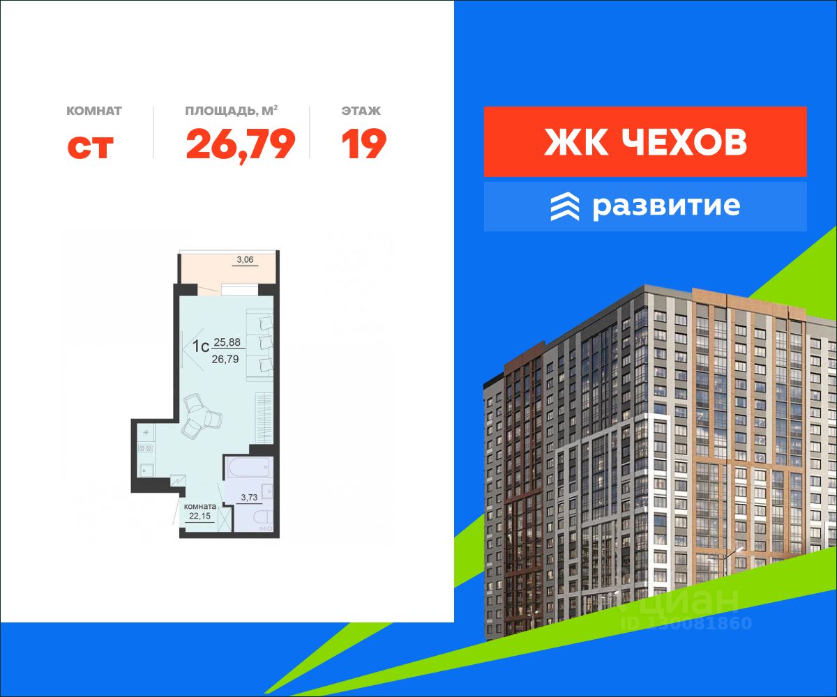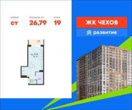 Продается квартира площадью 26.79 кв. м без отделки. Квартира находится на 19 этаже 20 этажного дома, в жилом комплексе "Чехов". Комплекс расположен по адресу - г. Воронеж, ул. Богдана Хмельницкого д. 45а.