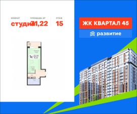 В продаже квартира площадью 31.22 кв. м с черновой отделкой отделкой. Квартира расположена на 15 этаже 18 этажного дома, в жилом комплексе комфорт-класса "Квартал 45".