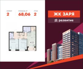 В продаже квартира площадью 68.06 кв. м с черновой отделкой. Квартира расположена на 2 этаже 8 этажного дома, в новом жилом комплексе "Заря" от федерального девелопера "Развитие".
