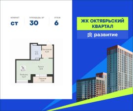 В продаже квартира площадью 30.00 кв. м с черновой отделкой. Квартира расположена на 6 этаже 12 этажного дома, в жилом комплексе "Октябрьский квартал" от девелопера "Развитие".