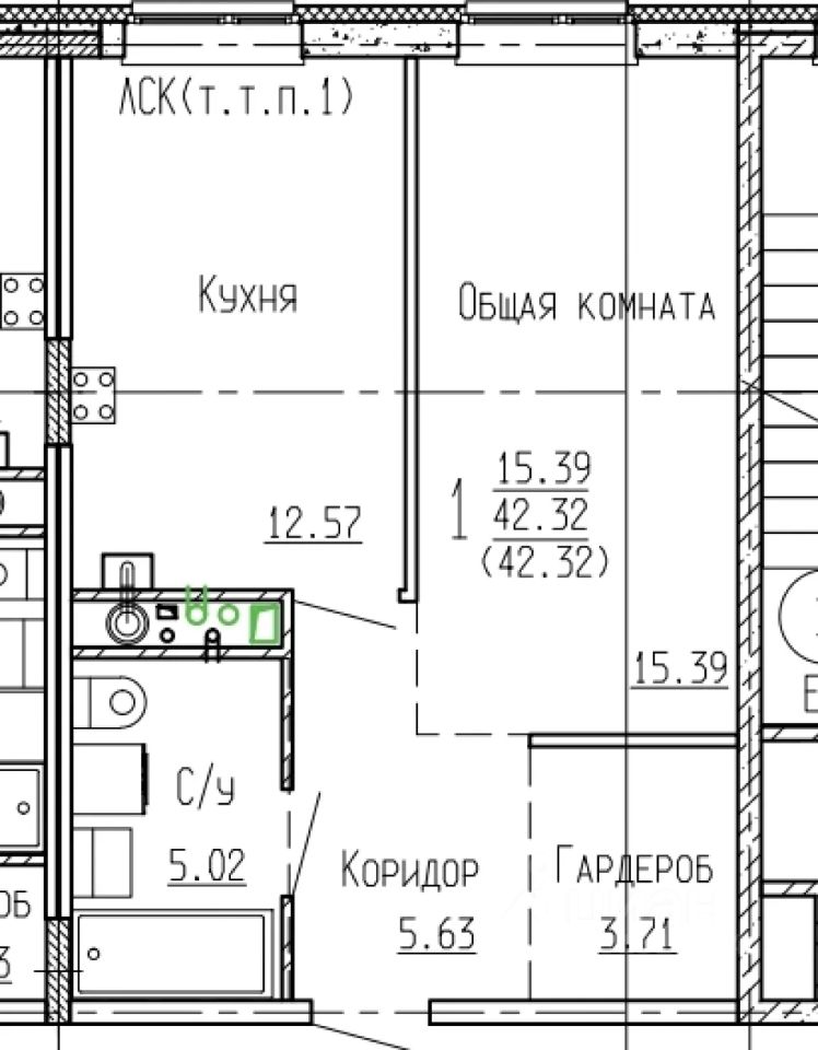 Общая площадь42,32 м²