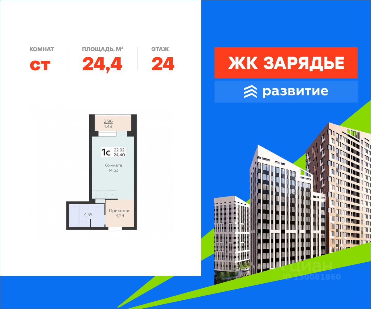 В продаже квартира площадью 24.40 кв. м с отделкой. Квартира расположена на 24 этаже 24 этажного дома, в новом микрорайоне комфорт-класса "Зарядье" (Девелопер - федеральный застройщик ГК "Развитие").