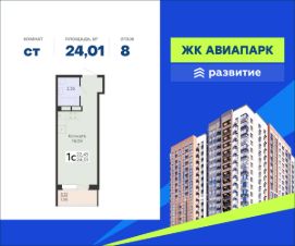 В продаже квартира площадью 24.01 кв. м с отделкой. Квартира расположена на 8 этаже 10 этажного дома, в новом жилом квартале "Авиапарк".