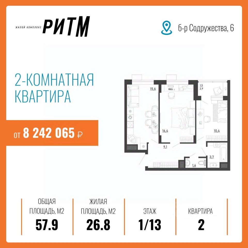 ЖК "РИТМ" — ДОСТУПНАЯ И ВЫГОДНАЯ ИНВЕСТИЦИЯ В ВАШЕ БУДУЩЕЕ Жилой комплекс "Ритм" по ул. Бульвар Содружества уч. 6 — часть масштабного проекта развития территории воронежского левобережья — микрорайона "Ключи", который займет 28,6 га недалеко от въезда в город по тамбовскому направлению. Здесь строится инновационный красивый мини-город. Он насыщен социальной и коммерческой инфраструктурой и обеспечен новейшими коммуникациями. Комплекс состоит не только из качественных домов. Решения по благоустройству стимулируют ведение активного здорового образа жизни. Продуманы возможности для взаимодействия людей, их творческой самореализации, выстраивания добрососедских связей и формирования современного приятного комьюнити. И все это на благоприятном экологическом фоне. Это действительно новый шаг в создании привлекательной среды для жизни в современном ритме! Жить, не ограничивая себя и свою семью, — разве не об этом вы мечтали? Вас ждет инновационное пространство, где вы будете вести свою насыщенную и интересную жизнь в выбранном вами ритме. Подземный паркинг на -1 этаже вместимостью на 114 машино-места, в том числе семейные парковки на два автомобиля освобождает двор от машин — там гораздо приятнее гулять с детьми или заниматься спортом. Жители смогут выходить к своему автомобилю в теплый паркинг прямо из лифта — нет беспокойства из-за погодных условий или за сохранность транспортного средства. Ваши гости тоже не останутся без парковки — на придомовой территории организовано - 131 место и вне придомовой территории - 213 мест. Для абсолютного комфорта на -1 этаже в каждой секции расположены кладовые помещение площадью от 2,10 до 5,0 кв.м., где можно хранить все что угодно — велосипеды, санки, лыжи и прочие вещи. Они больше не будут занимать весь балкон. Там гораздо приятнее пить кофе и любоваться видом из окна. ИНФРАСТРУКТУРА и ПРЕИМУЩЕСТВА Инновационное жилье в ЖК "Ритм" совсем рядом — 5 минут до Остужевского кольца, 20 минут до центра, рядом новая транспортная развязка. Легко добраться до работы и вузов, на концерт или в гости. Первый цифровой квартал в городе Дворы без машин Подземный паркинг и кладовые (в каждой секции) Сервисная Управляющая Компания (Smile) Новая инфраструктура района и коммуникаций Рядом с вами: новая уже действующая школа - 3 минут (просто перейти дорогу) новый детский сад (проект на стадии разработки, ориентировочный срок сдачи конец 2026 года) - 5 минут (просто перейти дорогу) 5 минут от центральной площади событий и прогулочных аллей стадион и спортивные площадки поликлиника (проект на стадии разработки) магазины аптеки детские площадки
