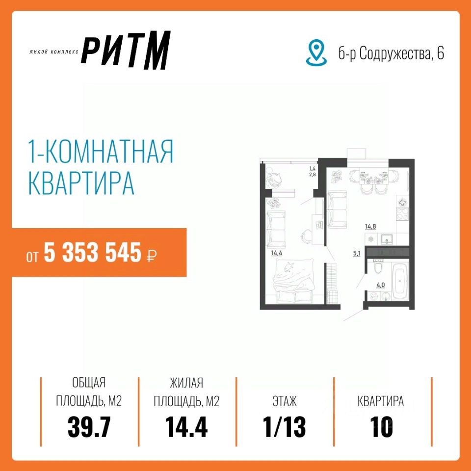 ЖК "РИТМ" — ДОСТУПНАЯ И ВЫГОДНАЯ ИНВЕСТИЦИЯ В ВАШЕ БУДУЩЕЕ Жилой комплекс "Ритм" по ул. Бульвар Содружества уч. 6 — часть масштабного проекта развития территории воронежского левобережья — микрорайона "Ключи", который займет 28,6 га недалеко от въезда в город по тамбовскому направлению. Здесь строится инновационный красивый мини-город. Он насыщен социальной и коммерческой инфраструктурой и обеспечен новейшими коммуникациями. Комплекс состоит не только из качественных домов. Решения по благоустройству стимулируют ведение активного здорового образа жизни. Продуманы возможности для взаимодействия людей, их творческой самореализации, выстраивания добрососедских связей и формирования современного приятного комьюнити. И все это на благоприятном экологическом фоне. Это действительно новый шаг в создании привлекательной среды для жизни в современном ритме! Жить, не ограничивая себя и свою семью, — разве не об этом вы мечтали? Вас ждет инновационное пространство, где вы будете вести свою насыщенную и интересную жизнь в выбранном вами ритме. Подземный паркинг на -1 этаже вместимостью на 114 машино-места, в том числе семейные парковки на два автомобиля освобождает двор от машин — там гораздо приятнее гулять с детьми или заниматься спортом. Жители смогут выходить к своему автомобилю в теплый паркинг прямо из лифта — нет беспокойства из-за погодных условий или за сохранность транспортного средства. Ваши гости тоже не останутся без парковки — на придомовой территории организовано - 131 место и вне придомовой территории - 213 мест. Для абсолютного комфорта на -1 этаже в каждой секции расположены кладовые помещение площадью от 2,10 до 5,0 кв.м., где можно хранить все что угодно — велосипеды, санки, лыжи и прочие вещи. Они больше не будут занимать весь балкон. Там гораздо приятнее пить кофе и любоваться видом из окна. ИНФРАСТРУКТУРА и ПРЕИМУЩЕСТВА Инновационное жилье в ЖК "Ритм" совсем рядом — 5 минут до Остужевского кольца, 20 минут до центра, рядом новая транспортная развязка. Легко добраться до работы и вузов, на концерт или в гости. Первый цифровой квартал в городе Дворы без машин Подземный паркинг и кладовые (в каждой секции) Сервисная Управляющая Компания (Smile) Новая инфраструктура района и коммуникаций Рядом с вами: новая уже действующая школа - 3 минут (просто перейти дорогу) новый детский сад (проект на стадии разработки, ориентировочный срок сдачи конец 2026 года) - 5 минут (просто перейти дорогу) 5 минут от центральной площади событий и прогулочных аллей стадион и спортивные площадки поликлиника (проект на стадии разработки) магазины аптеки детские площадки