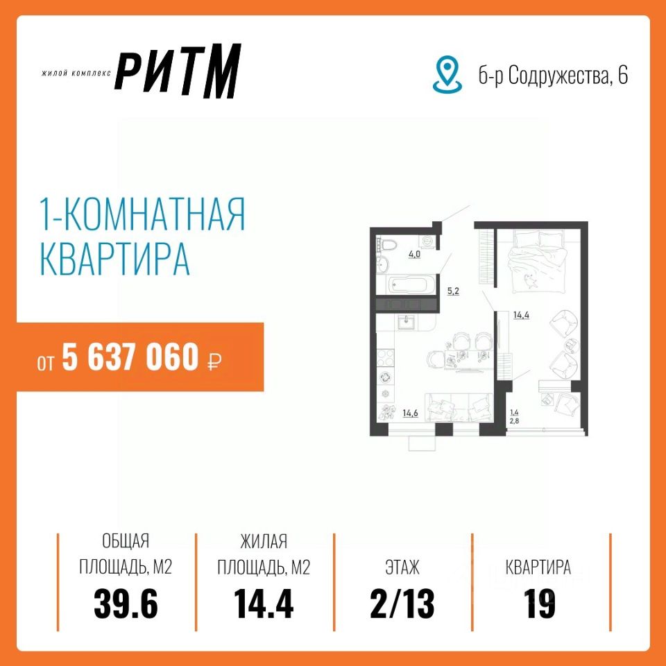 ЖК "РИТМ" — ДОСТУПНАЯ И ВЫГОДНАЯ ИНВЕСТИЦИЯ В ВАШЕ БУДУЩЕЕ Жилой комплекс "Ритм" по ул. Бульвар Содружества уч. 6 — часть масштабного проекта развития территории воронежского левобережья — микрорайона "Ключи", который займет 28,6 га недалеко от въезда в город по тамбовскому направлению. Здесь строится инновационный красивый мини-город. Он насыщен социальной и коммерческой инфраструктурой и обеспечен новейшими коммуникациями. Комплекс состоит не только из качественных домов. Решения по благоустройству стимулируют ведение активного здорового образа жизни. Продуманы возможности для взаимодействия людей, их творческой самореализации, выстраивания добрососедских связей и формирования современного приятного комьюнити. И все это на благоприятном экологическом фоне. Это действительно новый шаг в создании привлекательной среды для жизни в современном ритме! Жить, не ограничивая себя и свою семью, — разве не об этом вы мечтали? Вас ждет инновационное пространство, где вы будете вести свою насыщенную и интересную жизнь в выбранном вами ритме. Подземный паркинг на -1 этаже вместимостью на 114 машино-места, в том числе семейные парковки на два автомобиля освобождает двор от машин — там гораздо приятнее гулять с детьми или заниматься спортом. Жители смогут выходить к своему автомобилю в теплый паркинг прямо из лифта — нет беспокойства из-за погодных условий или за сохранность транспортного средства. Ваши гости тоже не останутся без парковки — на придомовой территории организовано - 131 место и вне придомовой территории - 213 мест. Для абсолютного комфорта на -1 этаже в каждой секции расположены кладовые помещение площадью от 2,10 до 5,0 кв.м., где можно хранить все что угодно — велосипеды, санки, лыжи и прочие вещи. Они больше не будут занимать весь балкон. Там гораздо приятнее пить кофе и любоваться видом из окна. ИНФРАСТРУКТУРА и ПРЕИМУЩЕСТВА Инновационное жилье в ЖК "Ритм" совсем рядом — 5 минут до Остужевского кольца, 20 минут до центра, рядом новая транспортная развязка. Легко добраться до работы и вузов, на концерт или в гости. Первый цифровой квартал в городе Дворы без машин Подземный паркинг и кладовые (в каждой секции) Сервисная Управляющая Компания (Smile) Новая инфраструктура района и коммуникаций Рядом с вами: новая уже действующая школа - 3 минут (просто перейти дорогу) новый детский сад (проект на стадии разработки, ориентировочный срок сдачи конец 2026 года) - 5 минут (просто перейти дорогу) 5 минут от центральной площади событий и прогулочных аллей стадион и спортивные площадки поликлиника (проект на стадии разработки) магазины аптеки детские площадки
