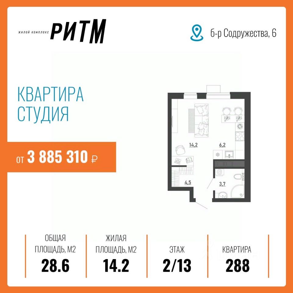 ЖК "РИТМ" — ДОСТУПНАЯ И ВЫГОДНАЯ ИНВЕСТИЦИЯ В ВАШЕ БУДУЩЕЕ Жилой комплекс "Ритм" по ул. Бульвар Содружества уч. 6 — часть масштабного проекта развития территории воронежского левобережья — микрорайона "Ключи", который займет 28,6 га недалеко от въезда в город по тамбовскому направлению. Здесь строится инновационный красивый мини-город. Он насыщен социальной и коммерческой инфраструктурой и обеспечен новейшими коммуникациями. Комплекс состоит не только из качественных домов. Решения по благоустройству стимулируют ведение активного здорового образа жизни. Продуманы возможности для взаимодействия людей, их творческой самореализации, выстраивания добрососедских связей и формирования современного приятного комьюнити. И все это на благоприятном экологическом фоне. Это действительно новый шаг в создании привлекательной среды для жизни в современном ритме! Жить, не ограничивая себя и свою семью, — разве не об этом вы мечтали? Вас ждет инновационное пространство, где вы будете вести свою насыщенную и интересную жизнь в выбранном вами ритме. Подземный паркинг на -1 этаже вместимостью на 114 машино-места, в том числе семейные парковки на два автомобиля освобождает двор от машин — там гораздо приятнее гулять с детьми или заниматься спортом. Жители смогут выходить к своему автомобилю в теплый паркинг прямо из лифта — нет беспокойства из-за погодных условий или за сохранность транспортного средства. Ваши гости тоже не останутся без парковки — на придомовой территории организовано - 131 место и вне придомовой территории - 213 мест. Для абсолютного комфорта на -1 этаже в каждой секции расположены кладовые помещение площадью от 2,10 до 5,0 кв.м., где можно хранить все что угодно — велосипеды, санки, лыжи и прочие вещи. Они больше не будут занимать весь балкон. Там гораздо приятнее пить кофе и любоваться видом из окна. ИНФРАСТРУКТУРА и ПРЕИМУЩЕСТВА Инновационное жилье в ЖК "Ритм" совсем рядом — 5 минут до Остужевского кольца, 20 минут до центра, рядом новая транспортная развязка. Легко добраться до работы и вузов, на концерт или в гости. Первый цифровой квартал в городе Дворы без машин Подземный паркинг и кладовые (в каждой секции) Сервисная Управляющая Компания (Smile) Новая инфраструктура района и коммуникаций Рядом с вами: новая уже действующая школа - 3 минут (просто перейти дорогу) новый детский сад (проект на стадии разработки, ориентировочный срок сдачи конец 2026 года) - 5 минут (просто перейти дорогу) 5 минут от центральной площади событий и прогулочных аллей стадион и спортивные площадки поликлиника (проект на стадии разработки) магазины аптеки детские площадки