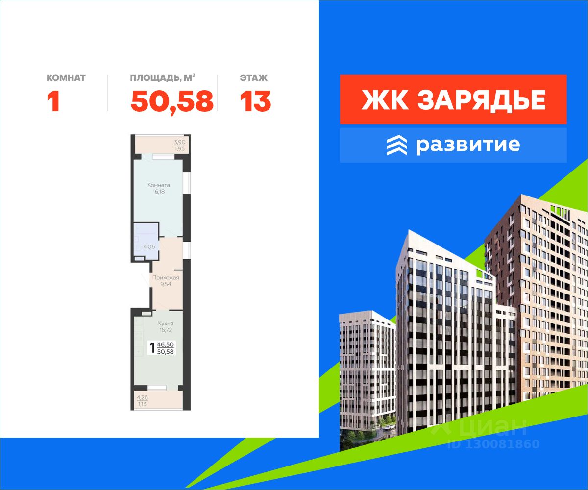 В продаже квартира площадью 50.58 кв. м с черновой отделкой. Квартира расположена на 13 этаже 21 этажного дома, в новом микрорайоне комфорт-класса "Зарядье" (Девелопер - федеральный застройщик ГК "Развитие").