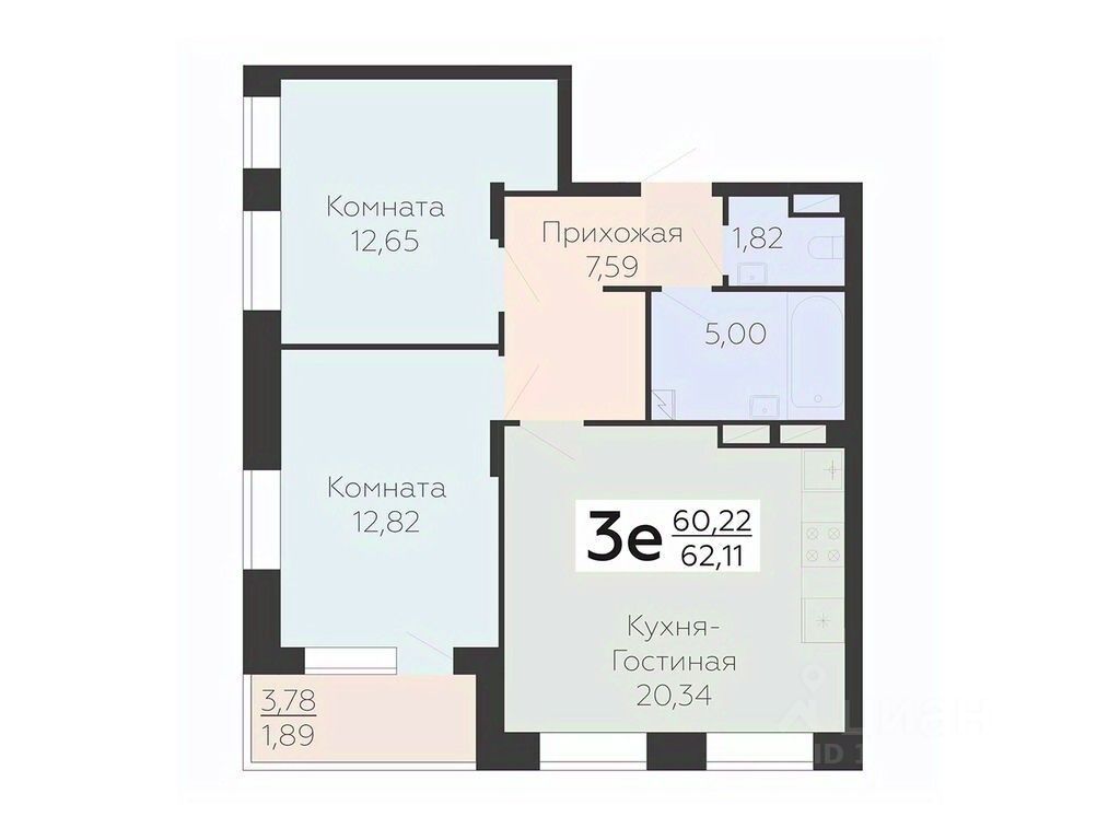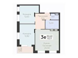 В продаже квартира площадью 62.11 кв. м с черновой отделкой. Квартира расположена на 2 этаже 21 этажного дома, в новом микрорайоне комфорт-класса "Зарядье" (Девелопер - ГК "Развитие").