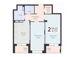 В продаже квартира площадью 67.51 кв. м с черновой отделкой. Квартира расположена на 2 этаже 23 этажного дома, в новом микрорайоне комфорт-класса "Зарядье" (Девелопер - ГК "Развитие").