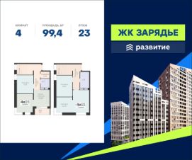 В продаже квартира площадью 99.40 кв. м с отделкой. Квартира расположена на 23 этаже 24 этажного дома, в новом микрорайоне комфорт-класса "Зарядье" (Девелопер - ГК "Развитие").
