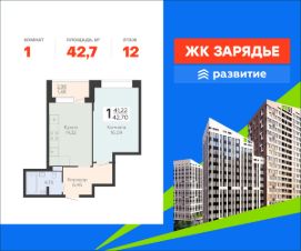 В продаже квартира площадью 42.70 кв. м с отделкой. Квартира расположена на 12 этаже 24 этажного дома, в новом микрорайоне комфорт-класса "Зарядье" (Девелопер - федеральный застройщик ГК "Развитие").