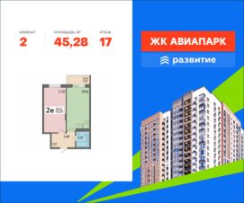 В продаже квартира площадью 45.28 кв. м с отделкой. Квартира расположена на 17 этаже 17 этажного дома, в новом жилом квартале "Авиапарк".