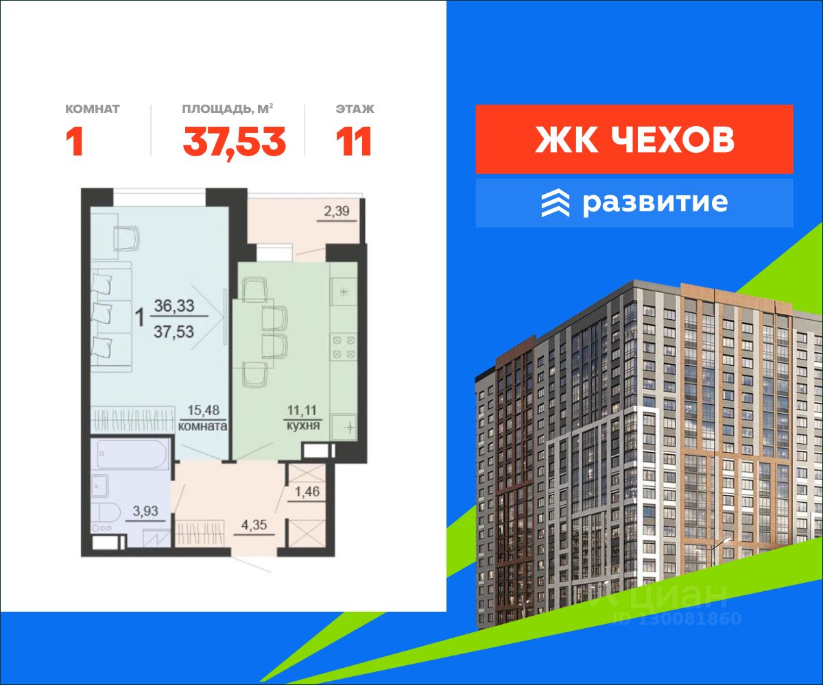 Продается квартира площадью 37.53 кв. м без отделки. Квартира находится на 11 этаже 20 этажного дома, в жилом комплексе "Чехов". Комплекс расположен по адресу - г. Воронеж, ул. Богдана Хмельницкого д. 45а.