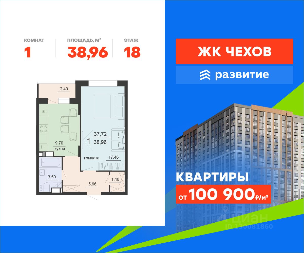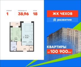 Продается квартира площадью 38.96 кв. м без отделки. Квартира находится на 18 этаже 20 этажного дома, в жилом комплексе "Чехов". Комплекс расположен по адресу - г. Воронеж, ул. Богдана Хмельницкого д. 45а.