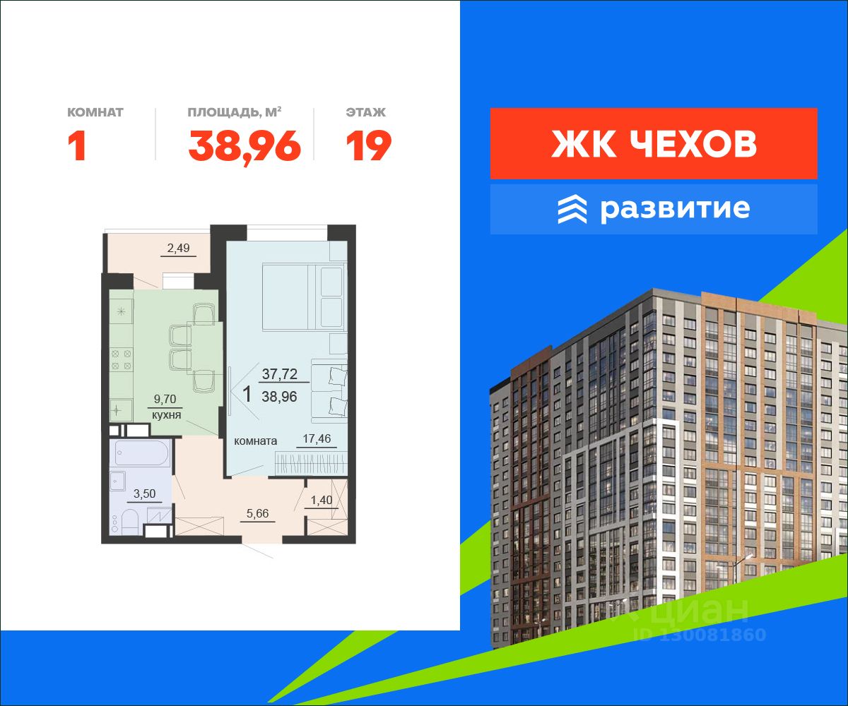 Продается квартира площадью 38.96 кв. м без отделки. Квартира находится на 19 этаже 20 этажного дома, в жилом комплексе "Чехов". Комплекс расположен по адресу - г. Воронеж, ул. Богдана Хмельницкого д. 45а.