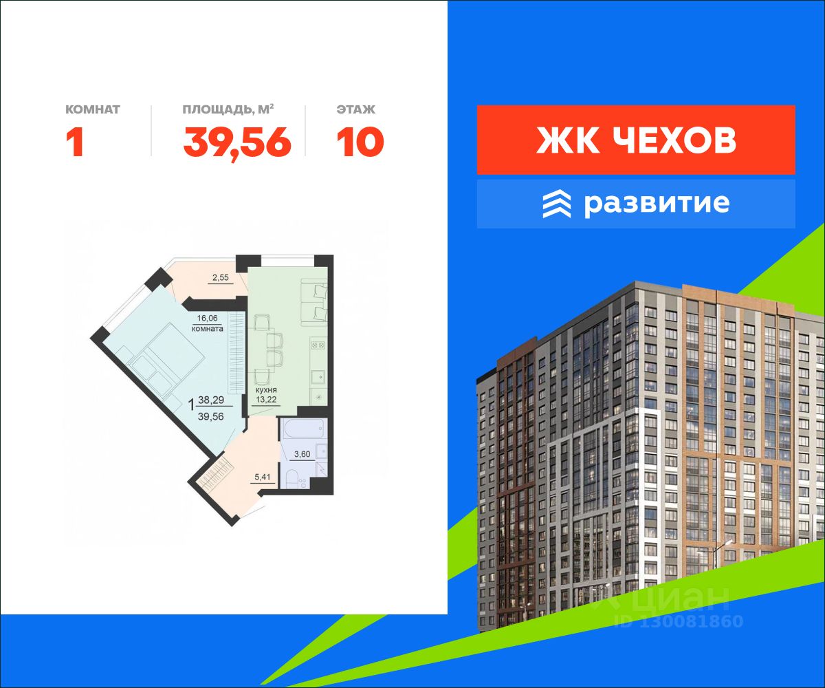 Продается квартира площадью 39.56 кв. м без отделки. Квартира находится на 10 этаже 20 этажного дома, в жилом комплексе "Чехов". Комплекс расположен по адресу - г. Воронеж, ул. Богдана Хмельницкого д. 45а.