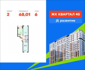 В продаже квартира площадью 68.01 кв. м с черновой отделкой. Квартира расположена на 6 этаже 18 этажного дома, в жилом комплексе комфорт-класса "Квартал 45".