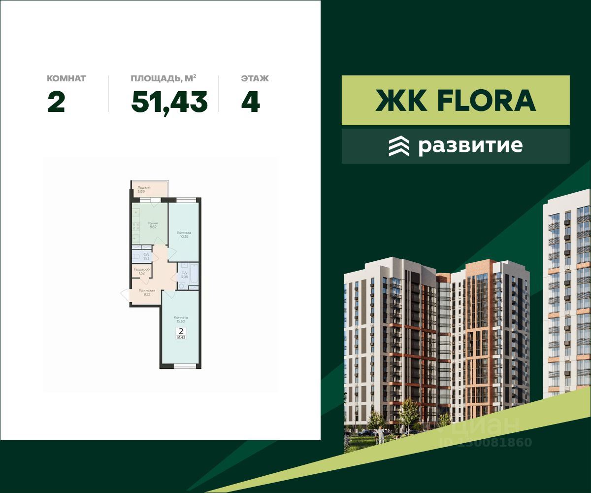 ЖК FLORA - лучшие условия для жизни в одном из самых привлекательных и зелёных районов города. Проект от федерального застройщика ГК "Развитие" состоит из семи секций переменной этажности и также включает в себя мультифункциональные площадки для всех видов отдыха, собственное ритейл-пространство, 270 парковочных мест для автомобилей, множество продуманных планировок. Жизнь в идеальном балансе между природой и современным городом - жизнь в ЖК FLORA!