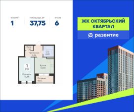 В продаже квартира площадью 37.75 кв. м с черновой отделкой. Квартира расположена на 6 этаже 24 этажного дома, в жилом комплексе "Октябрьский квартал" от девелопера "Развитие".