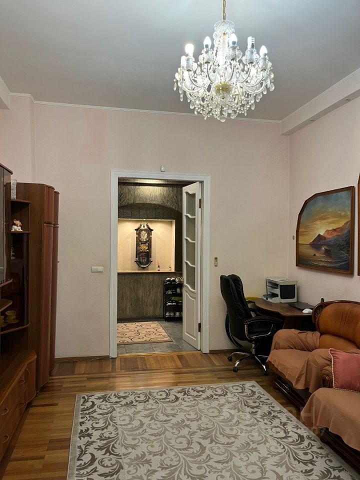 Общая площадь квартиры составляет 79,8 кв.м.,жилая площадь 41 кв.м. Квартира расположена на втором этаже трехэтажного кирпичного дома, построенного в 1950 году. Высокие потолки ( 4 метра ), создают ощущение простора и света, а окна выходят на тихую улицу.