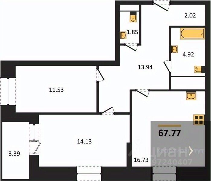 Квартира: 2 к 67,77 кв.м., 25 этаж в комплексе Галилей, 1 очередь, корп.2, сдача: 3кв. , этажей: 25, адрес Воронеж г., Кривошеина ул., д. 13/14, Застройщик: ГК Крайс.