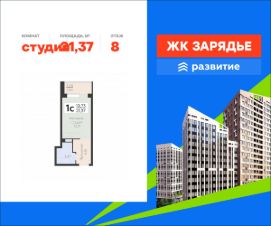 В продаже квартира площадью 21.37 кв. м с черновой отделкой. Квартира расположена на 8 этаже 21 этажного дома, в новом микрорайоне комфорт-класса "Зарядье" (Девелопер - ГК "Развитие").