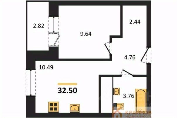Квартира: 1 к 32,50 кв.м., 7 этаж в комплексе Галилей, 1 очередь, корп.3, сдача: 3кв. , этажей: 25, адрес Воронеж г., Кривошеина ул., д. 13/14, Застройщик: ГК Крайс.