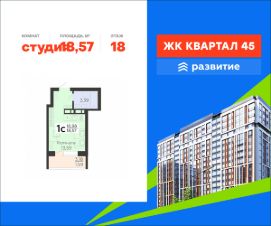 В продаже квартира площадью 18.57 кв. м с черновой отделкой отделкой. Квартира расположена на 18 этаже 18 этажного дома, в жилом комплексе комфорт-класса "Квартал 45".