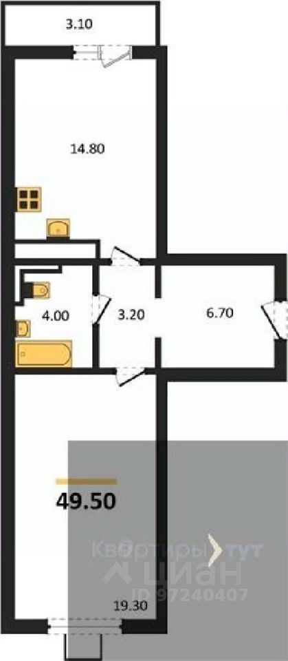 Квартира: 1 к 49,50 кв.м., 8 этаж в комплексе Яблоневые сады, 1 очередь, корп.14.1, сдача: 1кв. , этажей: 19, адрес Воронеж г., Загоровского ул., д. 5/4, Застройщик: ВЫБОР.
