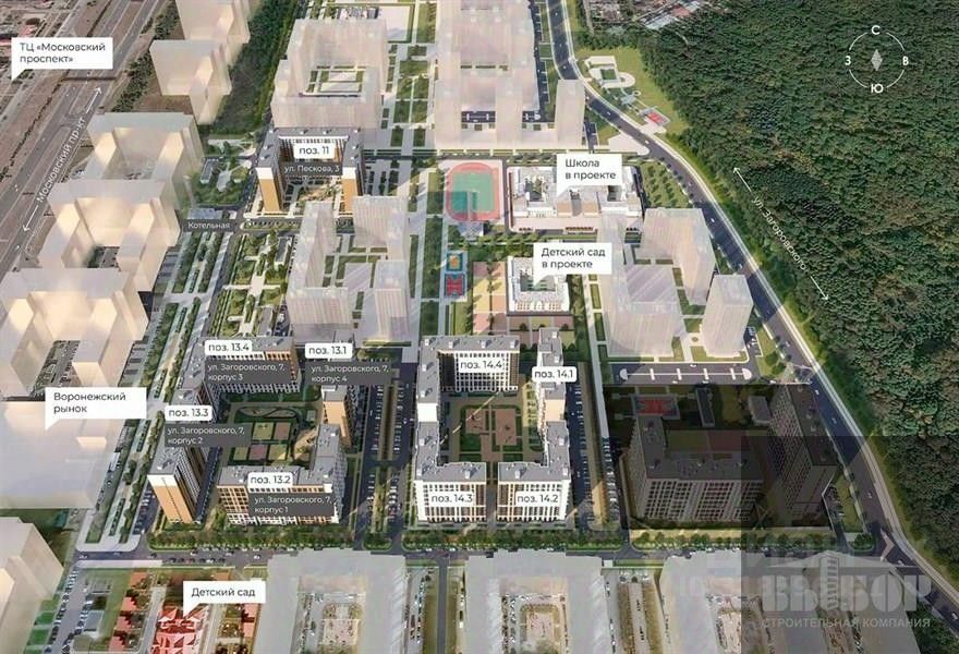 Квартира: 1 к 49,50 кв.м., 14 этаж в комплексе Яблоневые сады, 1 очередь, корп.14.1, сдача: 1кв. , этажей: 19, адрес Воронеж г., Загоровского ул., д. 5/4, Застройщик: ВЫБОР.