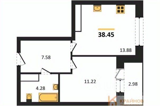 Квартира: 1 к 38,45 кв.м., 25 этаж в комплексе Галилей, 1 очередь, корп.1, сдача: 3кв. , этажей: 25, адрес Воронеж г., Кривошеина ул., д. 13/14, Застройщик: ГК Крайс.
