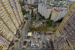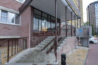 На первом этаже жилого комплекса есть разные магазины и коммерческие помещения (маркетплейсы, кофейня, аптека и т.д.)