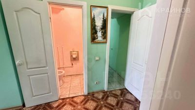 Раздельный санузел, ванная - 5 м2, где отлично помещается гладильная доска и организованно место для хранения бытовых предметов.