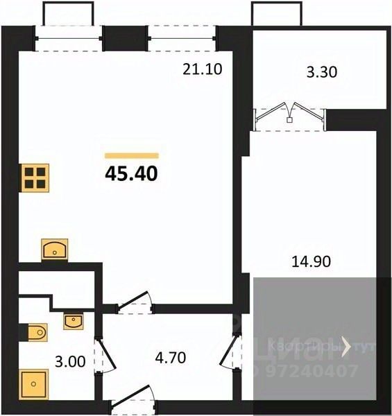 Квартира: 1 к 45,40 кв.м., 13 этаж в комплексе Ключи CLUB, 1 очередь, корп.1, сдача: 2кв. , этажей: 15, адрес Воронеж г., Содружества бул., д. 5, Застройщик: Новый код.