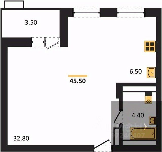Студия: 45,50 кв.м., 7 этаж в комплексе Ключи CLUB, 1 очередь, корп.1, сдача: 2кв. , этажей: 15, адрес Воронеж г., Содружества бул., д. 52 корп. 5, Застройщик: Новый код.