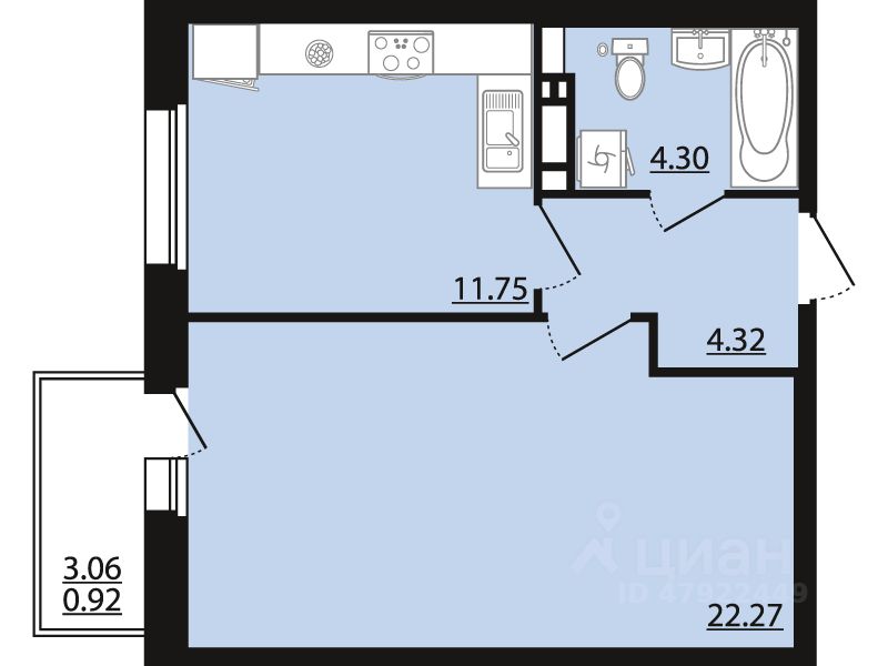 Общая площадь43,56 м²