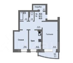 Высота потолков составляет 2,7 метра, что делает пространство более воздушным и светлым.
