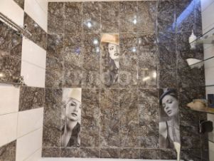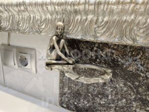 Интересные дизайнерские светильники и люстры, привезённые с выставок. В ванной дизайнерская плитка и декор, который невозможно найти в магазинах, это штучный товар. Кухня выполнена на заказ из из массива дуба в виде японских домиков, дополнены стены кирпичиками в виде японских символов, на стене панно на заказ, и потолок продолжает японскую тему. В спальне круглая кровать, выполнена на заказ с матрасом нагрузкой до 200 кг.