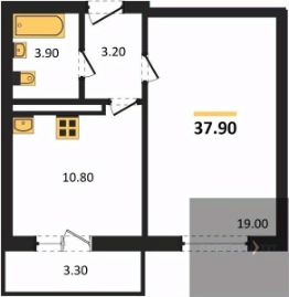 Квартира: 1 к 37,90 кв.м., 16 этаж в комплексе Озерки, 4 очередь, корп.46, сдача: 4кв. , этажей: 17, адрес Воронеж г., Шидловского ул., д. 22, Застройщик: ВЫБОР.