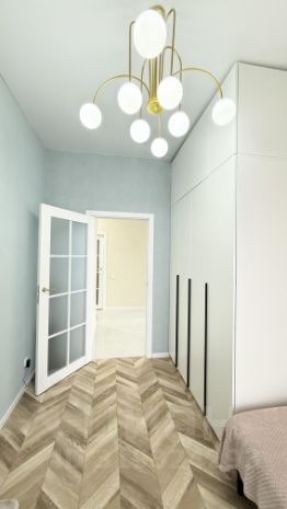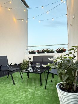 Квартира представляет собой два этажа. Ремонт выполнен в современном классическом стиле. На первом этаже расположены две оборудованные спальни, стены в одной выполнены из декоративной штукатурки, во второй окрашенны, с акцентом на фреску на одной стене, на полу качественный ламинат. Кухня-гостиная с окрашенными стенами, стена кухонной зоны из гибкого мрамора, полы- керамогранит. и просторный санузел 5м2. с использованием керамогранита и декоративной штукатурки. Потолки в квартире высотой 3,0м - натяжные с точечным светом и люстрами.