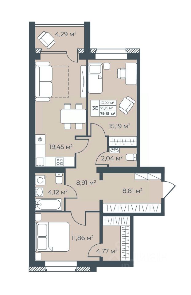 Продаётся 3-комнатная квартира в сданном доме (Свободы, 25к2 (Дом 2)), срок сдачи: II-кв. 2025, общей площадью 79.61 кв.м., на 6 этаже. Новый жилой комплекс комфорт-класса "Ботаника Парк" от застройщика "БМ-Групп" в городе Павловск.