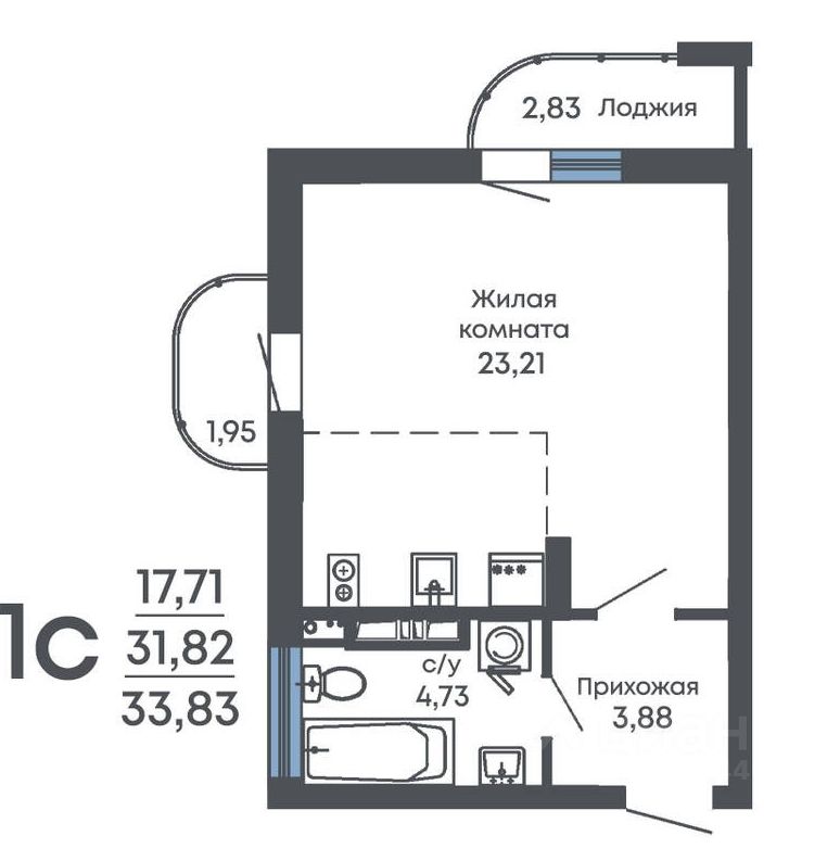 33,83 м²