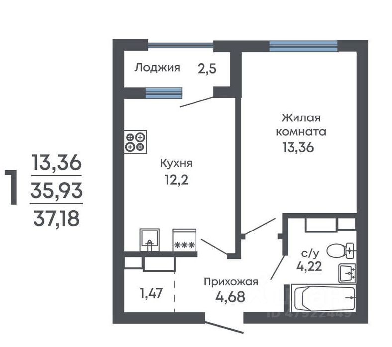 Продаётся 1-комнатная квартира в строящемся доме (Дом 1, дом 2), срок сдачи: I-кв. 2027, общей площадью 37.18 кв.м., на 3 этаже. Новый жилой комплекс от группы компаний "Проект Инвест" расположен по адресу: г. Воронеж, по ул. Шишкова.