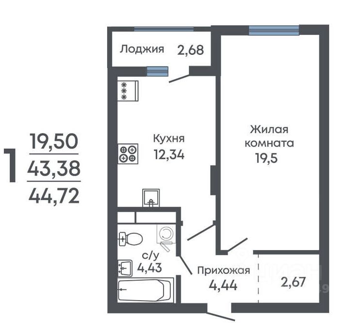 Продаётся 1-комнатная квартира в строящемся доме (Дом 1, дом 2), срок сдачи: I-кв. 2027, общей площадью 44.72 кв.м., на 9 этаже. Новый жилой комплекс от группы компаний "Проект Инвест" расположен по адресу: г. Воронеж, по ул. Шишкова.