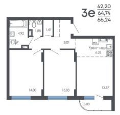 Продаётся 3-комнатная квартира в строящемся доме (Дом 1, дом 2), срок сдачи: I-кв. 2027, общей площадью 66.24 кв.м., на 5 этаже. Новый жилой комплекс от группы компаний "Проект Инвест" расположен по адресу: г. Воронеж, по ул. Шишкова.