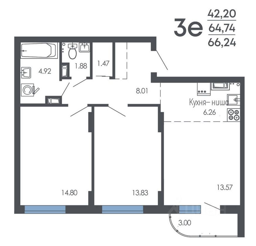 Продаётся 3-комнатная квартира в строящемся доме (Дом 1, дом 2), срок сдачи: I-кв. 2027, общей площадью 66.24 кв.м., на 8 этаже. Новый жилой комплекс от группы компаний "Проект Инвест" расположен по адресу: г. Воронеж, по ул. Шишкова.